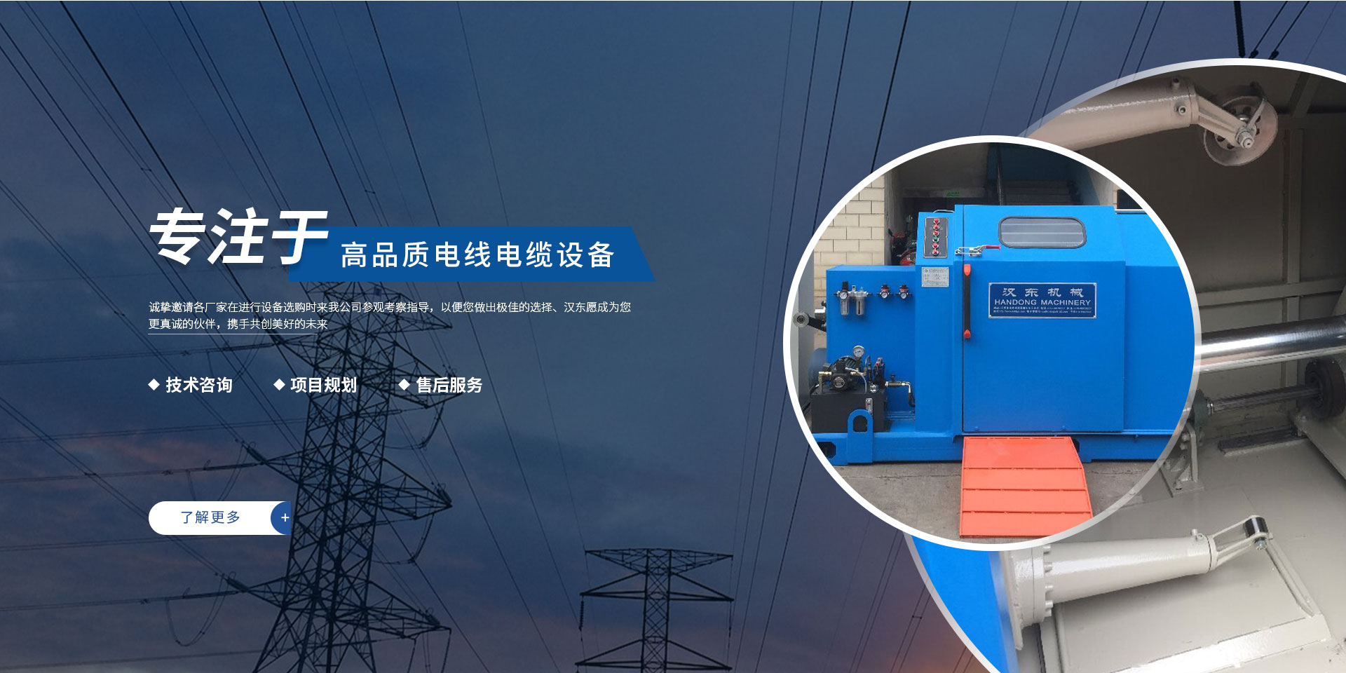 常州漢東機械始創(chuàng)于2006年,是集電線電纜機械設(shè)計、開發(fā)、制造、安裝、調(diào)試為一體化的高科技企業(yè)。本公司自開業(yè)以來,積極引進日本,歐美等國外電線電纜設(shè)備之先進技術(shù),先后成功推出了達到行業(yè)先進水平的電線電纜設(shè)備,主要產(chǎn)品有擠出、繞包、束線、成纜等電線電纜固定設(shè)備。在提供系統(tǒng)設(shè)備的同時,還向客戶提供售前技術(shù)咨詢、項目規(guī)劃、以及售后服務(wù)。我公司本著“以人為本、科技先導(dǎo)、用戶為上”的宗旨,為客戶提供牢靠的產(chǎn)品與省心的服務(wù)。漢東愿成為您更真誠的伙伴,攜手共創(chuàng)美好的未來!